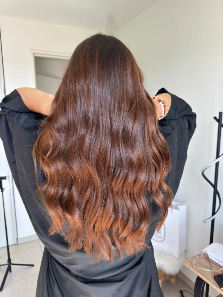 Je travaille avec une marque Végan, cruelty free, qui n’utilise pas de silicones cycliques, pas de sulfates , ni de parabènes. Respectueuse de la santé holistique du cuir chevelu et donc des cheveux.